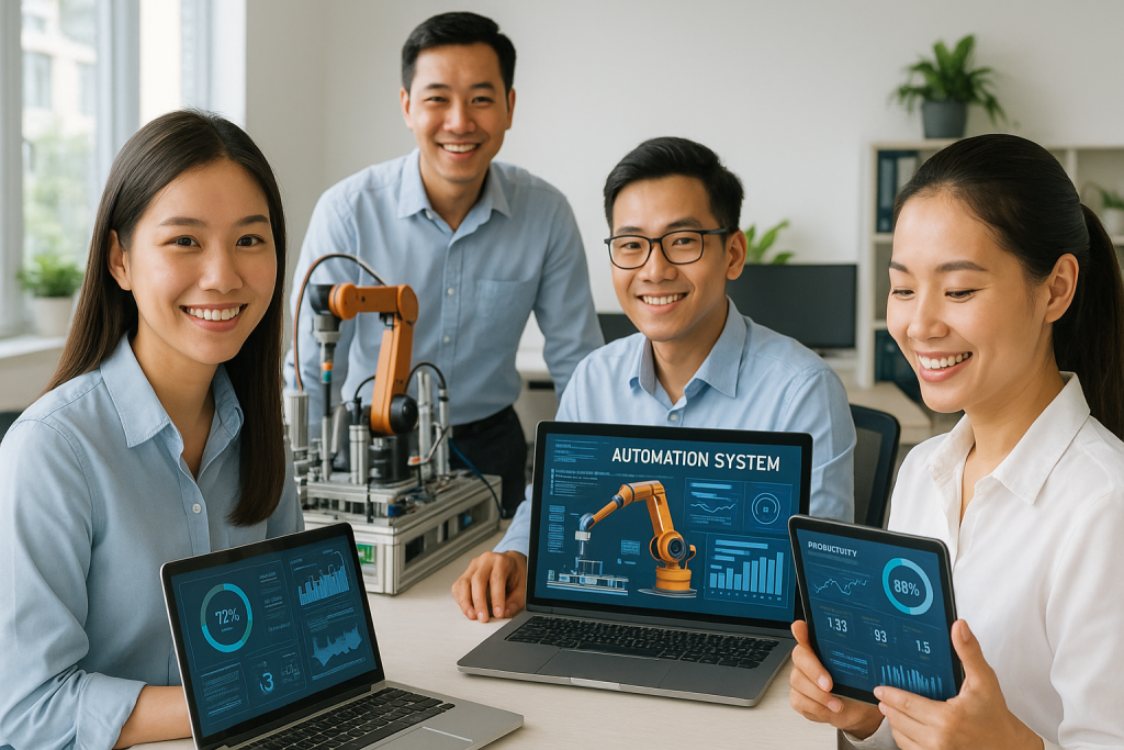 Lợi ích của tự động hóa vận hành trong SMEs không chỉ dừng lại ở việc giảm chi phí nhân sự mà còn thể hiện rõ qua khả năng nâng cao độ chính xác trong các công đoạn sản xuất và vận hành, từ đó đảm bảo chất lượng sản phẩm ổn định. Hơn nữa, tự động hóa quy trình không những giúp doanh nghiệp giảm thiểu rủi ro mà còn mang lại dữ liệu vận hành số hóa, hỗ trợ ra quyết định nhanh chóng và hiệu quả dựa trên phân tích thời gian thực.